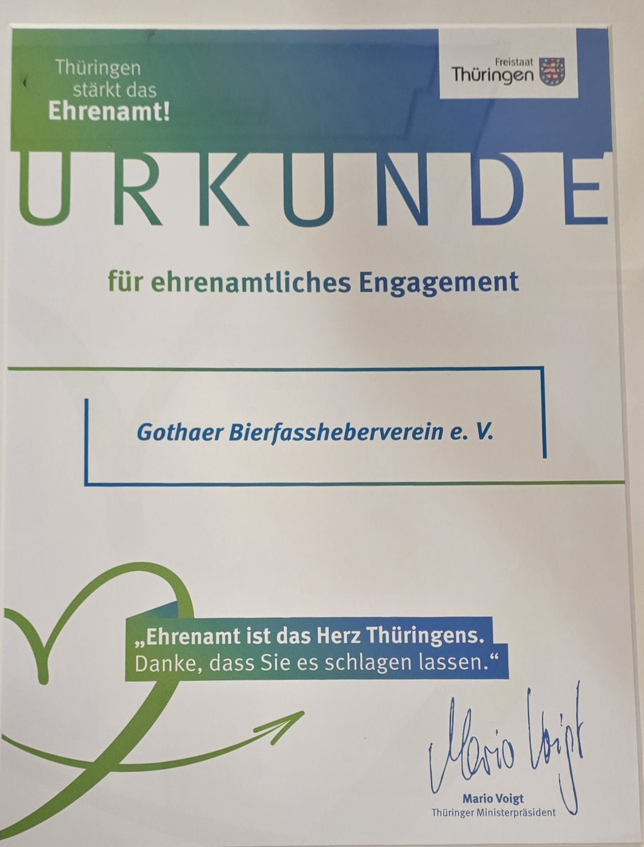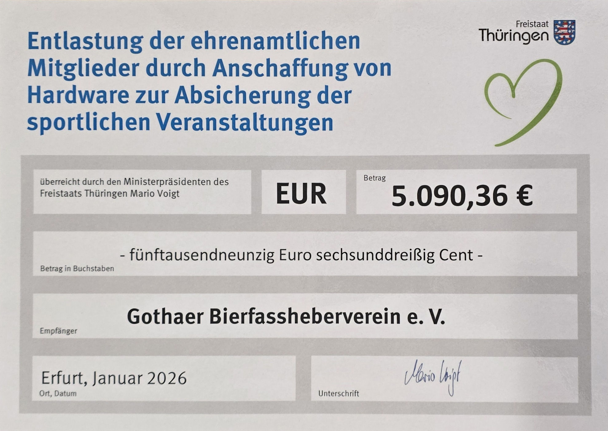 Am 20. Januar fand die offizielle Übergabe der Fördermittel des Freistaates Thüringen zur Unterstützung des Ehrenamts in Gotha statt.