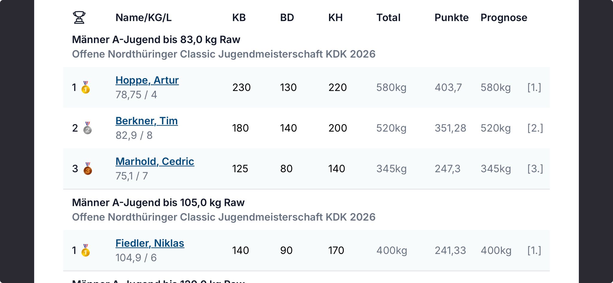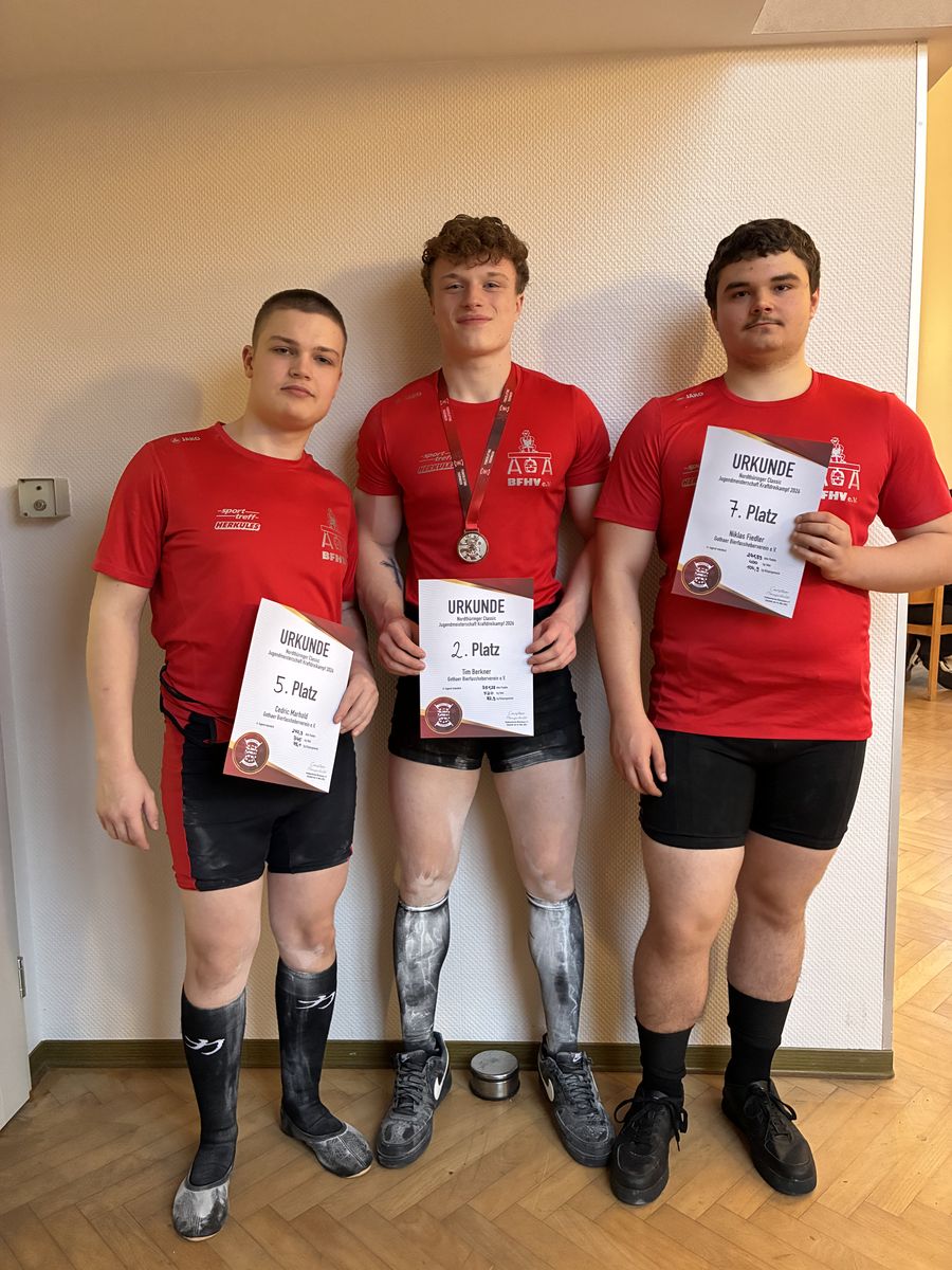 Für unseren Verein traten die Sportfreunde Tim Berkner, Cedric Marold und Niklas Fiedler an die Hantel – und sie haben auf ganzer Linie abgeliefert!